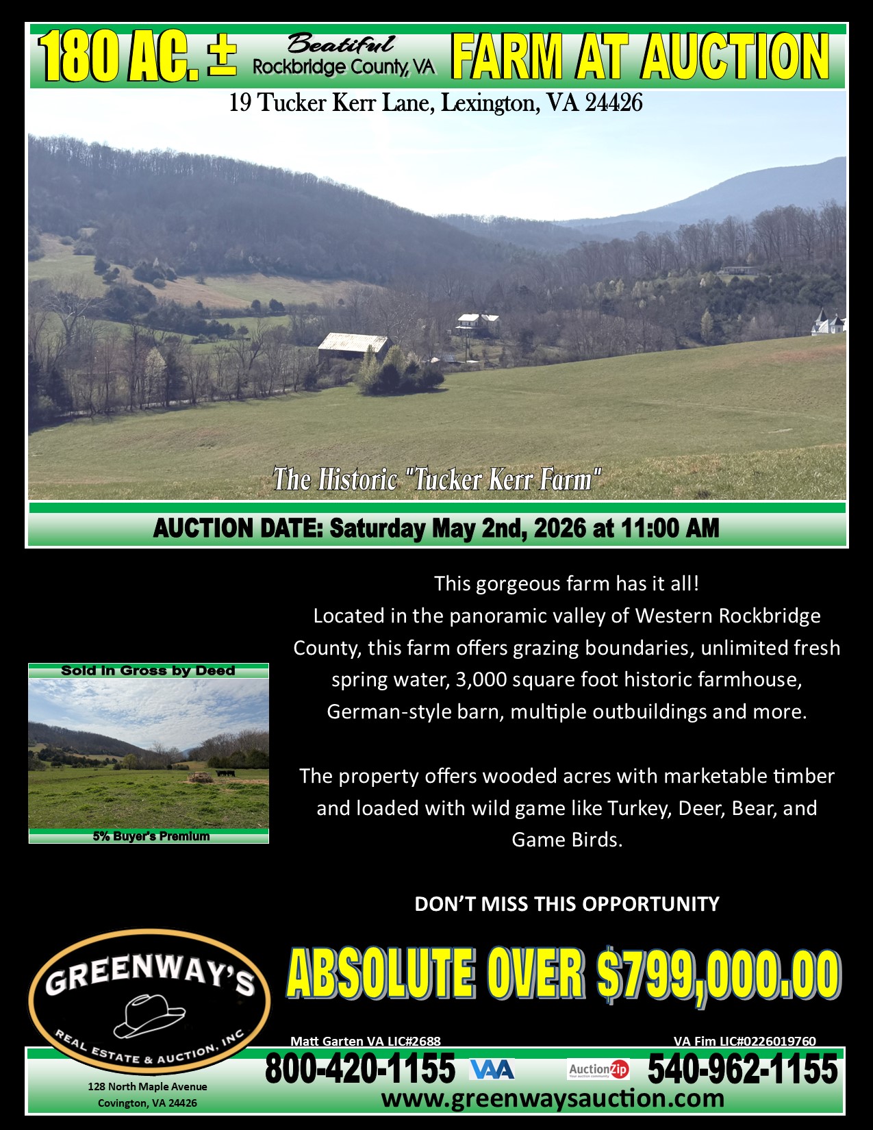 Today, Greenway’s is one of the fastest-growing, full-service auction and real estate brokerages in the area with 2 locations: Covington, Virginia, and White Sulphur Springs, West Virginia. Greenway’s does over $20 million in yearly sales and completes approximately 50 personal property and/or real estate auctions a year throughout the Mid-Atlantic states.