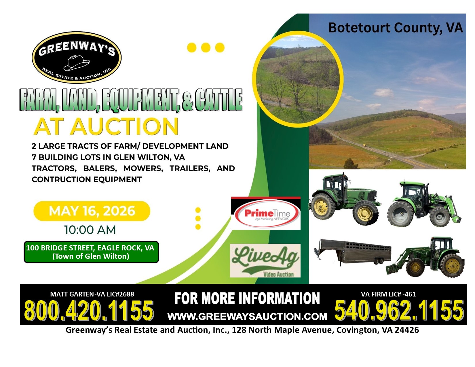 Today, Greenway’s is one of the fastest-growing, full-service auction and real estate brokerages in the area with 2 locations: Covington, Virginia, and White Sulphur Springs, West Virginia. Greenway’s does over $20 million in yearly sales and completes approximately 50 personal property and/or real estate auctions a year throughout the Mid-Atlantic states.